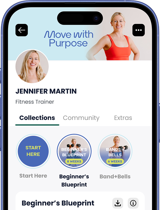 Move With Purpose gives you simple, guided strength workouts you can do at home - no pressure, no confusion. Each program is designed to help you build muscle, improve balance, and feel more confident in your body over time. With clear video guidance and an encouraging approach, you’ll stay consistent and strong for life.